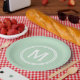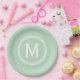 Modern Mint Green Custom Round Framed Monogram Paper Plate