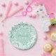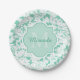 Modern Mint Green Floral Girly Monogram With Name Paper Plate