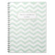 Custom-designed notebook featuring pastel mint green zig zag/chevron pattern with personalised name.
