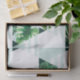 Modern tissue paper design featuring mint green and tropical leaves triangles pattern.