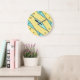 Modern Mint Green Yellow and Black Retro Large Clock