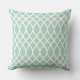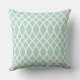 Square accent pillow design features a stylish wavy diamond trellis framework pattern. Colours are white and mint blue green