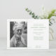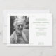 Simple and classy, this modern design is the perfect way to honour the recently departed during a luncheon or dinner funeral services. Features a simple mint green and white abstract style. All green and white typography can be changed to fit your memorial details. Replace the photo template with your own colour or black and white to customise.