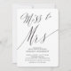 Beautiful Miss to Mrs bridal shower invitation featuring a stunning modern calligraphy script set on a white background for simple elegance.