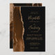 Modern Mocha Brown Gold Agate Dark Wedding Invitation