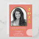 Modern Mod arches graduation party invitations with a photo of the graduate. Features a real gold foil (on the front). Change out the photo with your photo and it will automatically change it to black and white. Pretty colours of coral and blush pink, but you can change the colours if needed and any text!