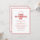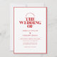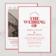 This modern monochrome wedding invitation features a clean layout with a bold red border, blending minimalist design with eye-catching detail.