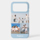 Modern Monogram 3 Photo Collage Baby Blue iPhone Case