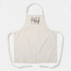 This modern apron features a monogram and name in stylish script calligraphy on a neutral beige background. It is easily customizable.