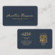 Modern Monogram Beautician Aesthetician Blue Gold business card with QR code, please let me know by DM if you need any modification before you make a purchase, thank you for your support :)