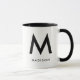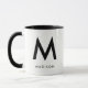 This simple and modern mug features your initial and your name, in bold black text on a black background.