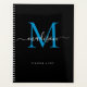Modern Monogram Black Ocean Bright Blue Girly Elegant Stylish Script Name 2021 Planner