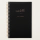 Modern black and faux gold planner. Personalised script name and decorative swash. Ideal for business, professional or personal note taking and goal planning. Start anytime.