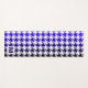 This yoga mat features a geometric houndstooth pattern in blueish-white over a royal blue to black gradient background. Personalise it with your monogram in a matching dark blue shade at the bottom right corner.