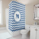 Modern Monogram Blue Striped Chevron Pattern Shower Curtain