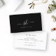 Modern and stylish, this simple monogram business card in black and white is a sophisticated design that combines your monogram in a brush script with flourishes along with minimalist typography.