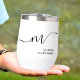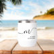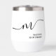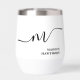 Modern Monogram Calligraphy Black White Bride or Bridesmaid Thermal Wine Tumbler. Easy to customise feminine and elegant script typography monogram. Perfect monogrammed name gift idea!
