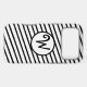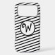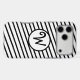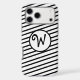 This chic phone case features a bold, diagonal black-and-white stripe pattern that exudes a high-fashion, modern aesthetic. At the center, a crisp white circular frame showcases a graceful, swirling script monogram "W," adding a personalized and artistic flair to your device.