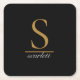 Modern Monogram Classic Black Gold Script Name Square Paper Coaster