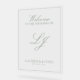 Elevate your wedding entrance with our Modern Monogram Classic Sage Green Script Welcome Acrylic Sign. This elegant piece effortlessly combines modern minimalism with timeless sophistication, making it the perfect addition to your special day.