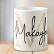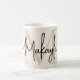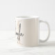 This modern coffee mug features a monogram and name in stylish script calligraphy on a neutral beige background. It is easily customizable.