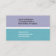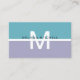 The striking combination of lavender and aqua blue creates a dynamic color contrast, along with a large monogram and your name, ensures your business card stands out in a sea of traditional options. The contemporary color block design adds a touch of flair without overwhelming the senses, making it versatile for any industry or profession.