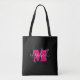 This feminine and black tote bag features your first name in chic white lettering over a hot pink monogram initial. MATCHING items in our store.