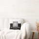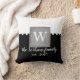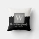 modern monogram custom pillow black and white stripes distressed style with dark brown text to personalise for unique home decor.