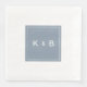 Modern Monogram Dinner Napkin. Dusty Blue & White.