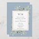 Modern Monogram Dusty Blue Greenery Wedding Invitation