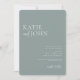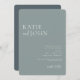 Invite your friends and loved ones to your simple wedding with this invitation with calligraphy lettering and dusty blue background. Personalise the wedding details and monogram at the back.