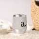 Modern Monogram Elegant Linen Look Initial Name Thermal Wine Tumbler. Easy to customise simple and classic typography monogram. Perfect monogrammed name gift idea! Note - No actual linen is used in the creation of this design or making of this item.