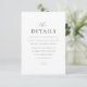 This sleek and elegant wedding details enclosure card is the perfect addition to your modern wedding suite. With a clean and minimalist design using gorgeous script and serif fonts, it adds a touch of sophistication to your wedding stationery. The card features reception details and a note informing guests to visit the wedding website for more information, all in a contemporary style.