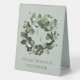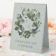Create a sign for wedding guests to sign your guestbook with this Sage Green Modern Monogram Eucalyptus Wreath Wedding Table Tent Sign. Sign design features a simple eucalyptus wreath with elegant script and typography. Perfect for the couple who want a modern and minimal botanical design for their wedding stationery. Additional wedding stationery and items available with this design.