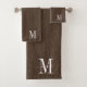 Modern Monogram Faux Linen Dark Brown Bath Towel Set