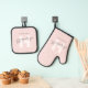 Modern Monogram Girly Script Blush Pink Initial Oven Mitt & Pot Holder Set