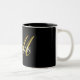 Modern Monogram Gold Black White Script Name Two-Tone Coffee Mug