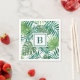 Modern Monogram Green Botanical Palm Leaves Napkins.