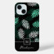 Modern Monogram Green Leaves Pattern iPhone 15 Case.