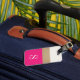 Modern and chic, this luggage features bold hot pink and gold stripes and a customisable monogram. Add you name and address to the back for a truly personalised luggage tag.
