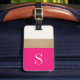 Modern Monogram Hot Pink Gold Striped Luggage Tag