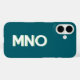 Modern minimalist monogram initial design which can be changed to personalise. White on a teal green background with a light apple green drop shadow.
