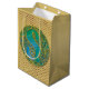 Modern Monogram Initial Gold Letter and Turquoise Medium Gift Bag