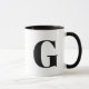 Simple, trendy custom initial letter monogram coffee mug in modern minimalist typography in black. A perfect personalised gift.