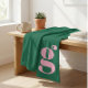 Modern Monogram Initial Letter Pink Green Preppy Fleece Blanket