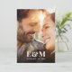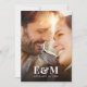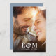 Modern dusty blue wedding save the date announcement featuring your photo overlayed with your monogram initials showcased in large elegant white typography. Personalise your save the date details on the back in simple white lettering.