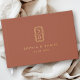 Elegant wedding guest book with the bride's and groom's monogram initials. Real foil text and monogram on a terracotta brown or custom colour background. The background colour can be changed in the design tool.