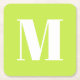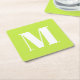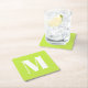 Modern monogram lime green custom initial letter square paper coaster