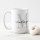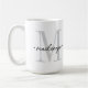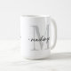Add a touch of modern elegance to your routine with this personalised monogram coffee mug design featuring a large initial and name in script. Perfect for yourself or as a thoughtful custom gift. Created by Simply Farmhouse Press.
