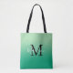 Modern Monogram Name Light to Dark Green Gradient Tote Bag